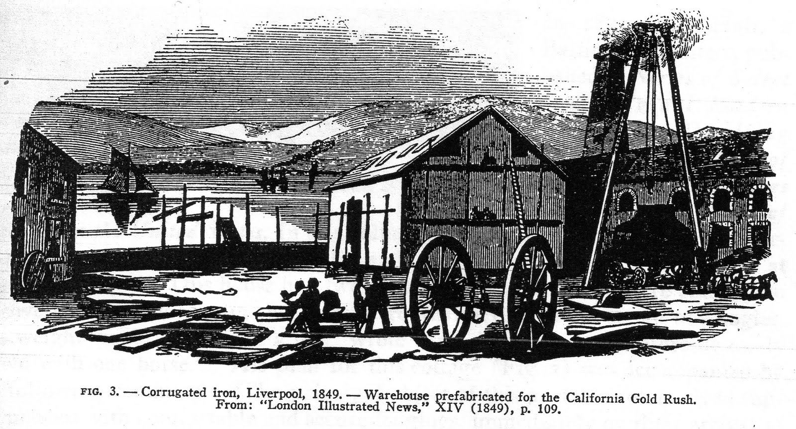La fiebre del oro en el estado de California generó las condiciones que hacen de la prefabricación una solución idónea a gran escala en un mercado liberado, exceso de capitales, mano de obra escasa, y necesidad urgente de vivienda.