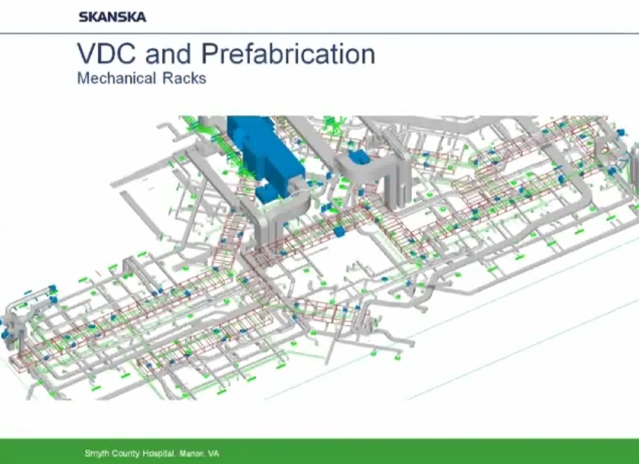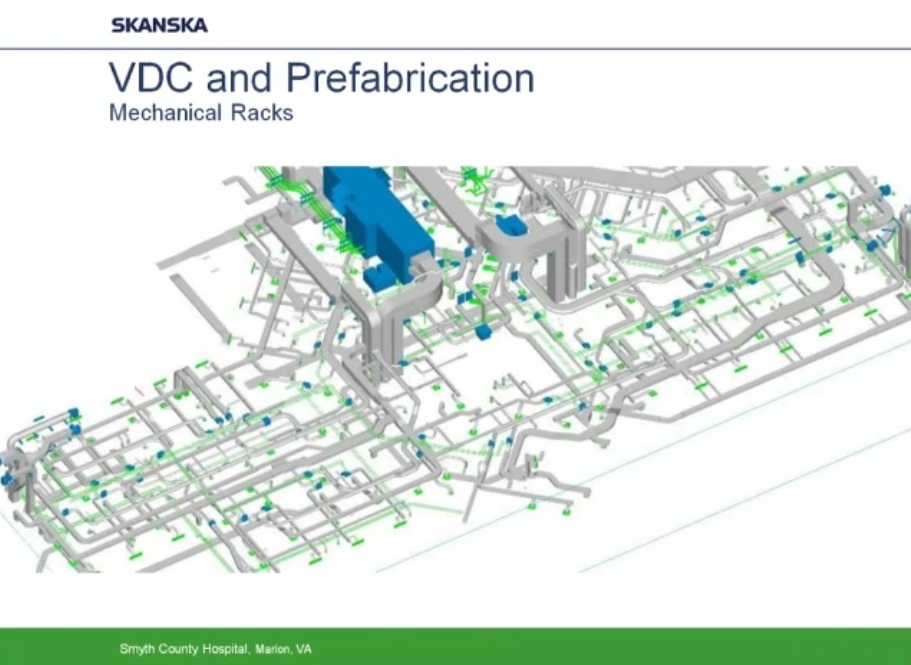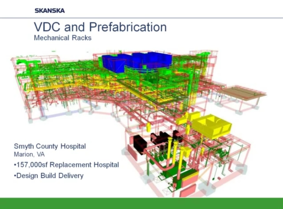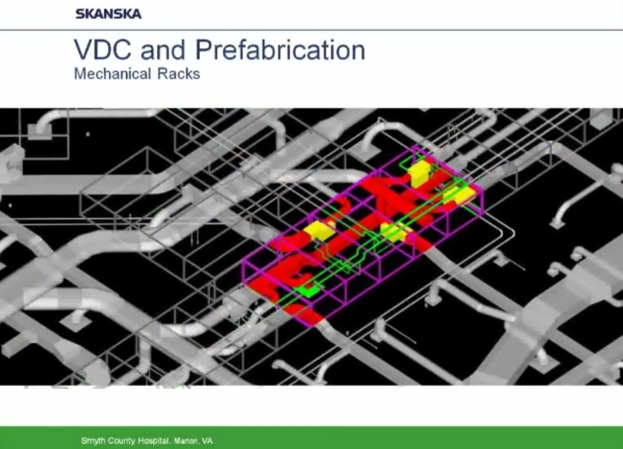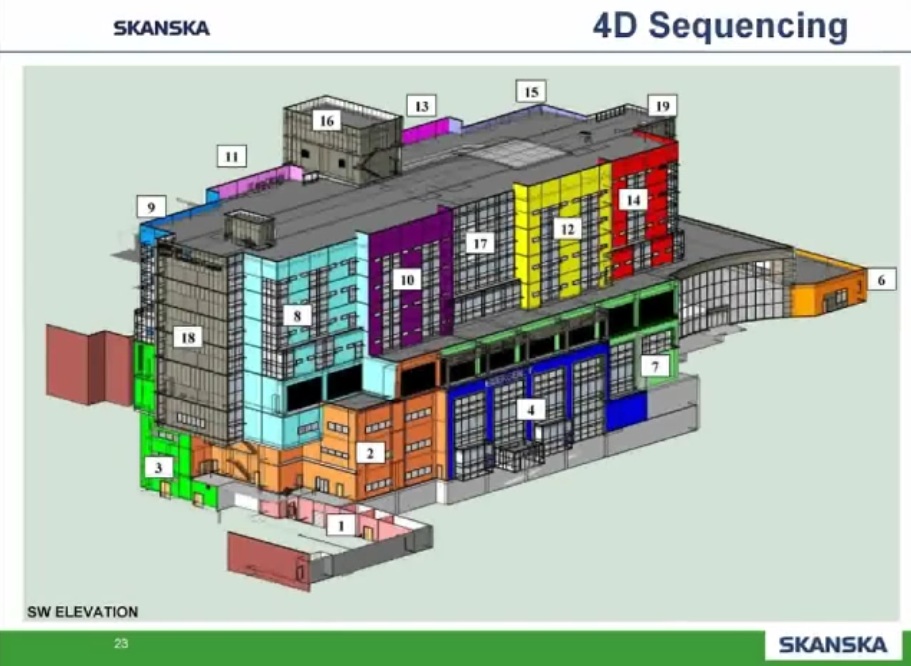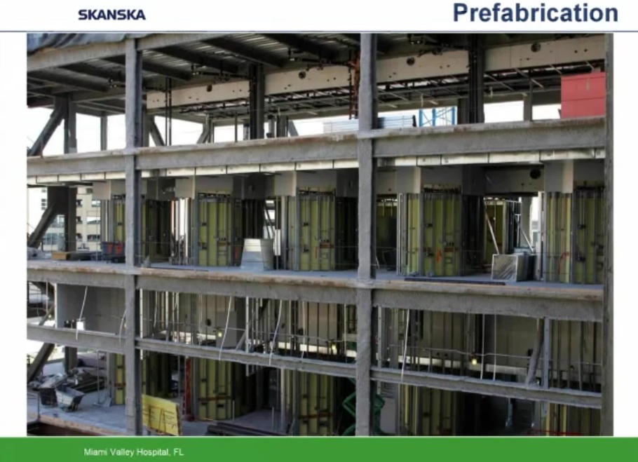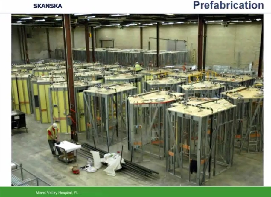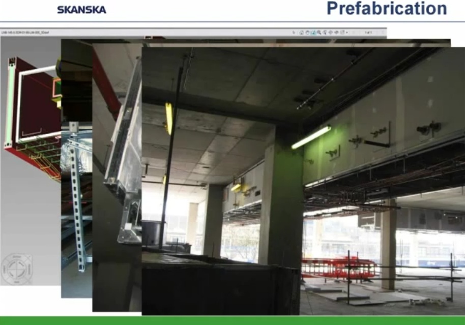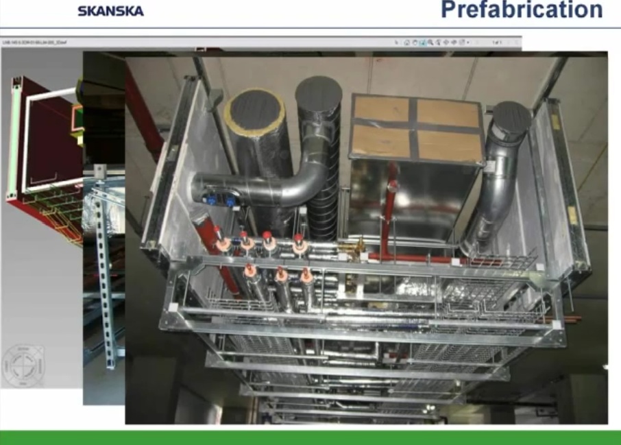 Como ejemplo de uso intensivo de programas BIM y Prefabricación expongo los siguientes esquemas y capturas de pantalla obtenidas de un video corporativo realizado por la empresa constructora Skanska y presentado por Helen Juan, Virtual – Design and Construction Manager- y Greg Smith, regional director of virtual design and construction for Skanska.
