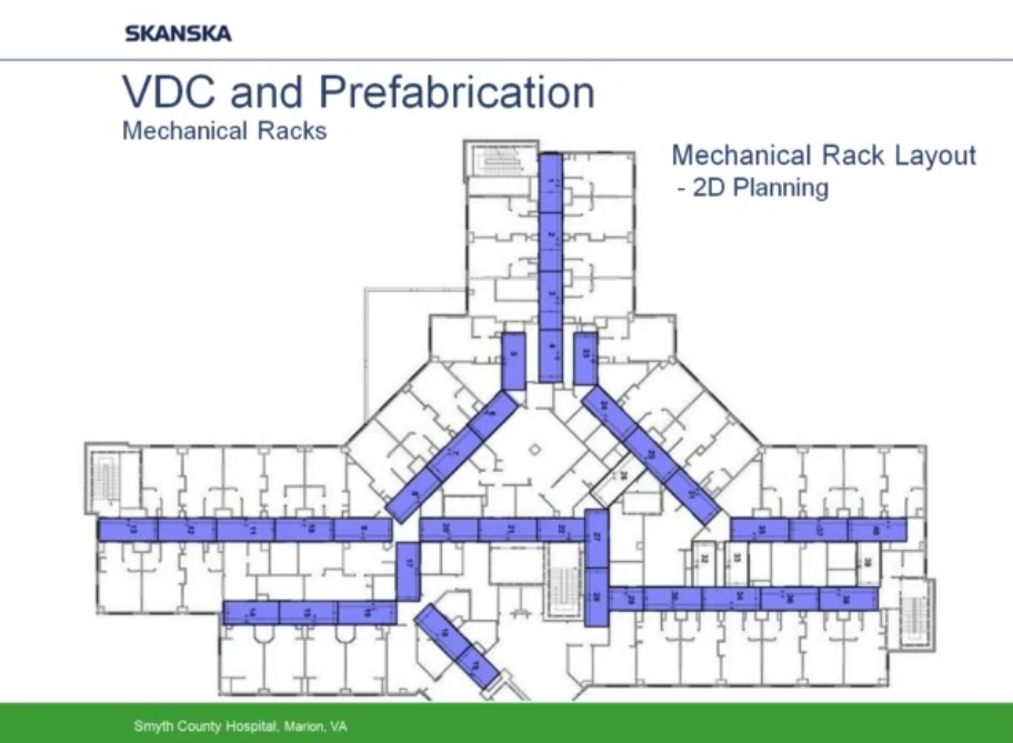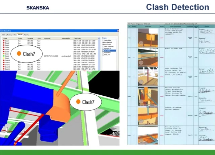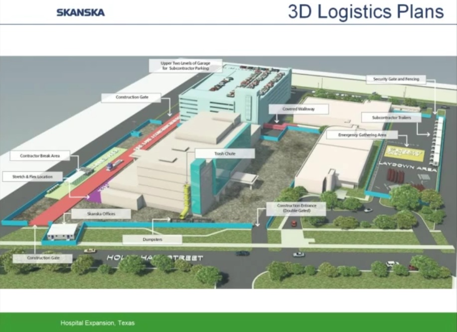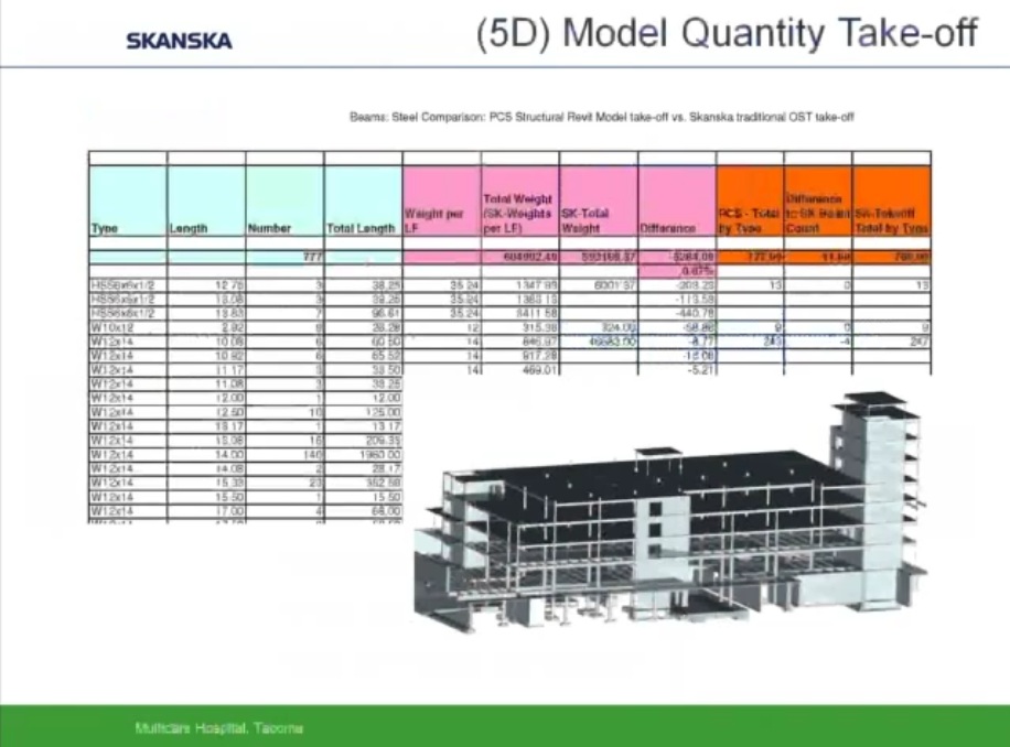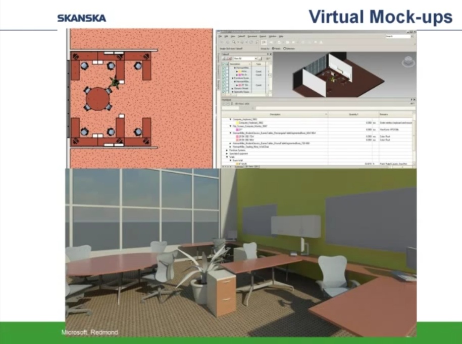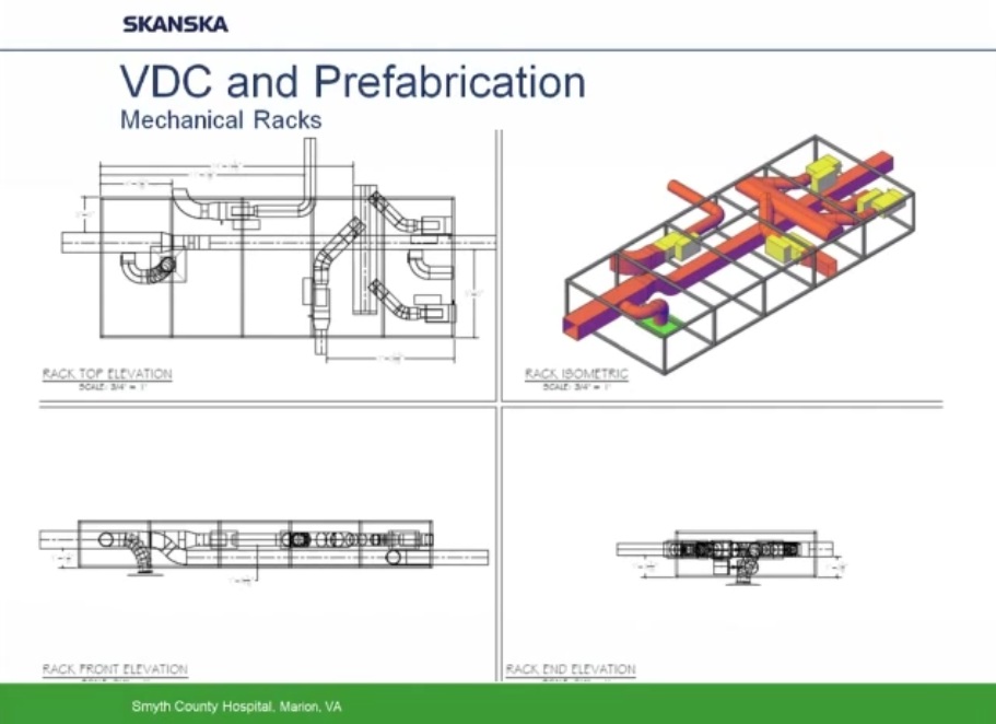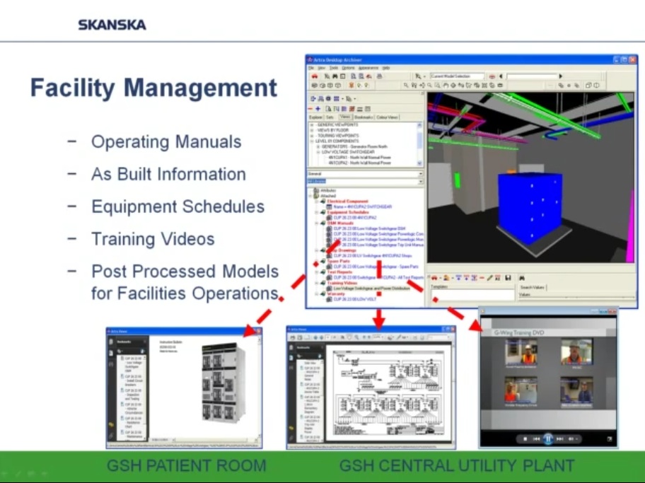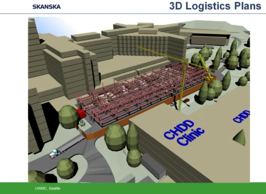 Como ejemplo de uso intensivo de programas BIM y Prefabricación expongo los siguientes esquemas y capturas de pantalla obtenidas de un video corporativo realizado por la empresa constructora Skanska y presentado por Helen Juan, Virtual – Design and Construction Manager- y Greg Smith, regional director of virtual design and construction for Skanska.