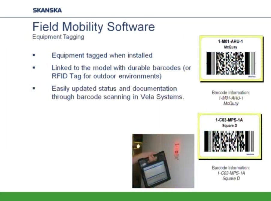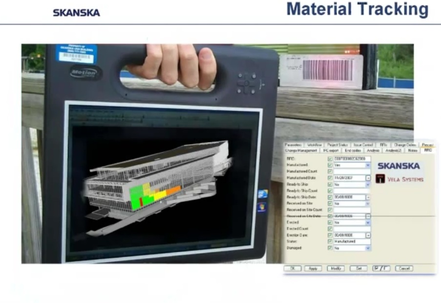 Los lectores de códigos de barras o de etiquetas con información transmisible por radiofrecuencia permiten conocer datos como el fabricante de cada elemento, fecha de fabricación, descripción y propiedades, y el lugar y el momento de colocación final en obra.