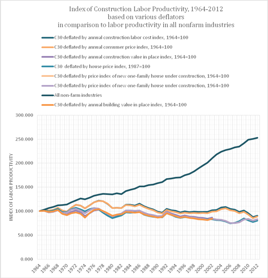 Una de las principales razones por la que durante las últimas décadas apenas se ha evolucionado en el uso masivo de nuevos sistemas constructivos y metodologías de trabajo en el sector de la construcción en los países desarrollados, es la cada vez menor incidencia de los costes de construcción en la formación de precios de un inmueble, así una mejora en la productividad consecuencia de la inversión en investigación, desarrollo e innovación que supusiera un 10% de ahorro en los costes de construcción, apenas supondría un 2,5% en el coste global del inmueble, demasiada inversión para recoger unos frutos tan pequeños.