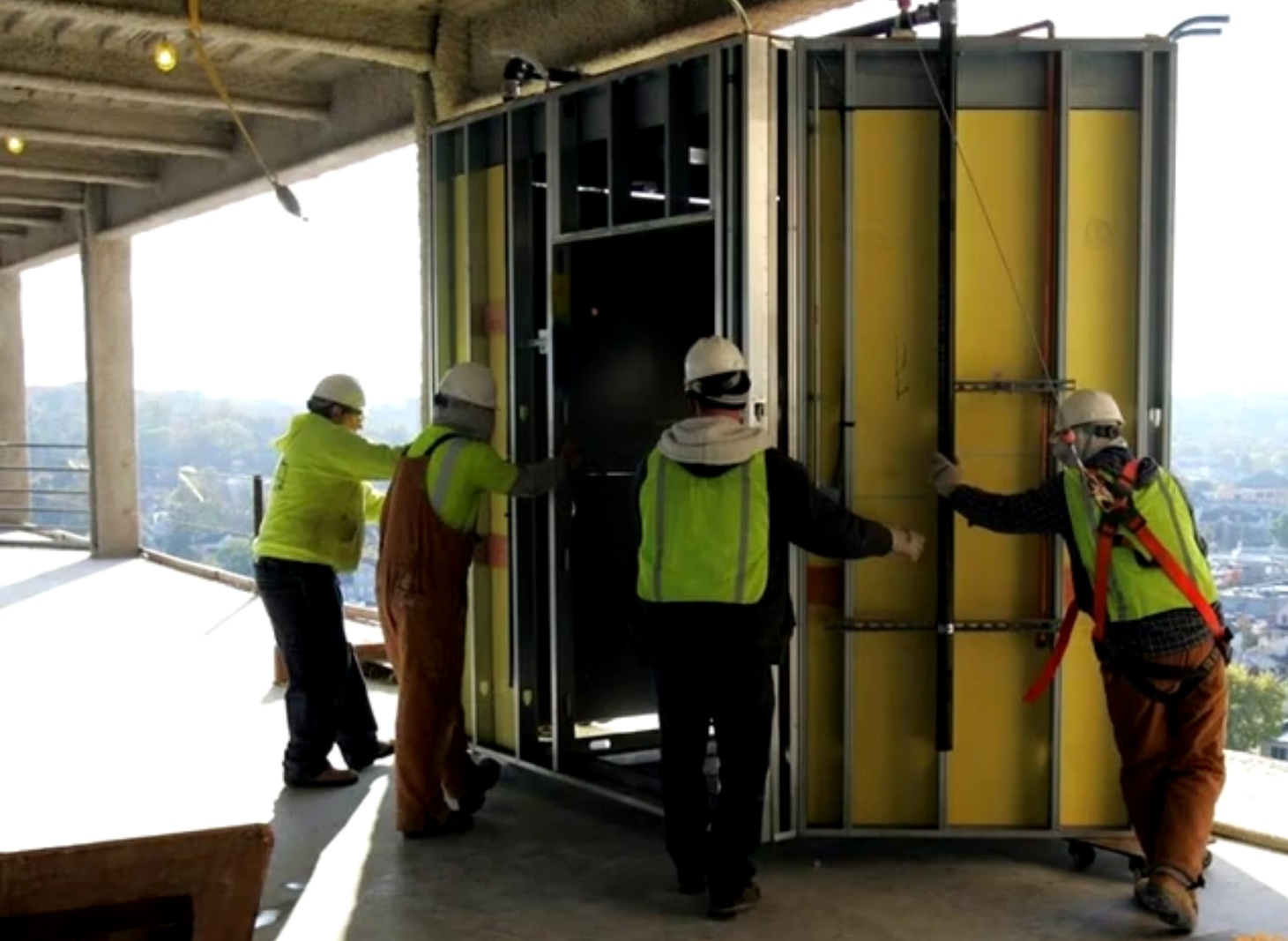 Y la prefabricación de las instalaciones, cuartos húmedos, estructuras y cerramientos, tomando especial protagonismo la prefabricación ligera por componentes, tras el descubrimiento de los materiales de cambio de fase, capaces de acumular un considerable efecto de inercia térmica en los cerramientos utilizando paneles de cerramiento de escaso grosor.